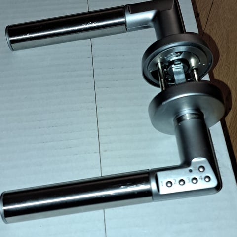 Rostfritt handtag . Adm kod , lås/öppet kod finns.