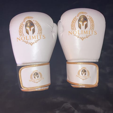 Boxningshandskar för tonåringar, storlek 8, svarta och vita.