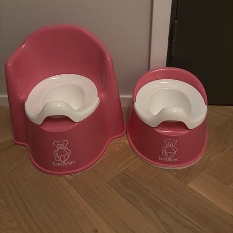 Samt en toalettsits för barn från babybjörn. Sitsen går att anpassa så den sitter stabilt ovanpå din vanliga toalettsits.
