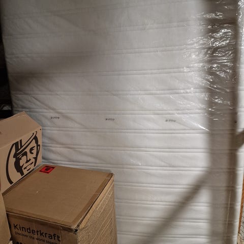 Madrass med måtten 16*200 cm i vitt tyg. Passar för enkel säng och har en enkel design med ränder för struktur.