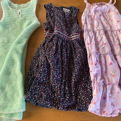 Ett paket med flera flickklänningar i mycket fint skick, inklusive en komplett pyjamas.