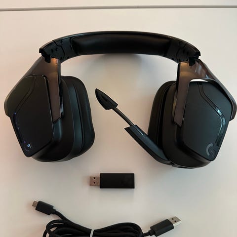 1,5 meters sladd. Adapter till USB A. Adapter från hörlurarna till separat 3,5mm audio och mikrofon för att koppla in i respektive port.