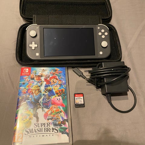 Nintendo Switch lite konsol i röd färg. Handhållen spelkonsol med pekskärm och knappar för spelkontroll. Passar för spel på språng och stationärt bruk.
