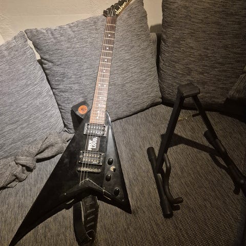 Säljer nu min elgitarr då jag har uppgraderat till en ny. Det är inget fel på gitarren förutom att tjocka e strängar har en liten defekt vilket gör så att det buzzar på 12:te frettet, men det går att lösa enkelt. Gitarren är perfekt för nybörjare.