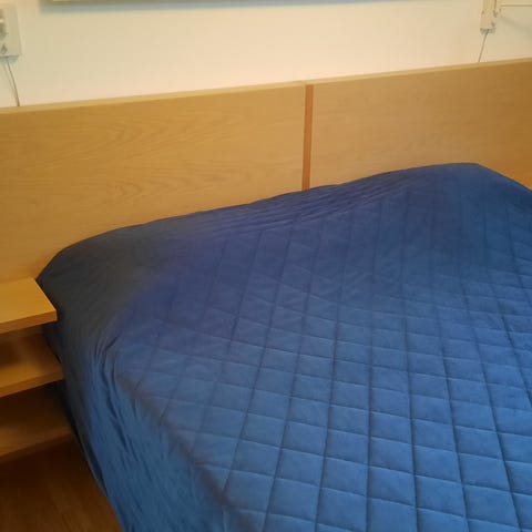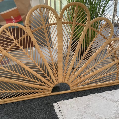 Sänggavel i ekfaner i fint skick. Höjd 87 cm, bredd 190 cm, tjocklek 3 cm. Passar 180 cm säng. Väggfästen medföljer.