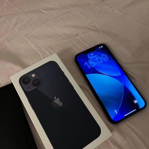 Apple iPhone 13 mobiltelefon med 128 GB lagringskapacitet i svart färg. 81 % i batteri kapacitet så i bra skick! Haft skal sedan jag köpte den lite färg som slitits på sidorna av mobilen. Inga repor som syns så med ett skal på ser man inte reporna på sidorna.