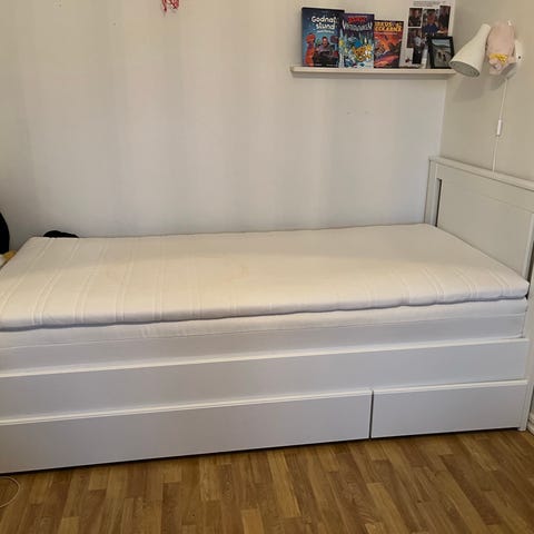 Säljer en sängstomme från IKEA, modell Songesand. Säljer enbart sängstommen och ribbotten, inte madrassen. Lite skavmärken finns, se bilder, men i övrigt fint skick. 90*200 cm.