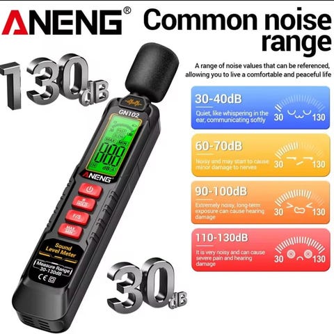 Ljudnivåmätare 30–130 dB för omgivande buller – vindskyddad, portabel och exakt