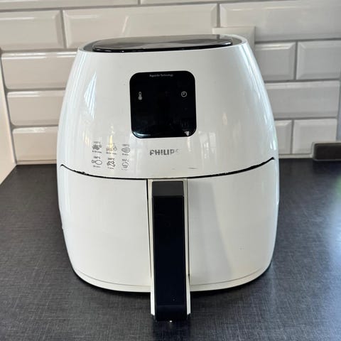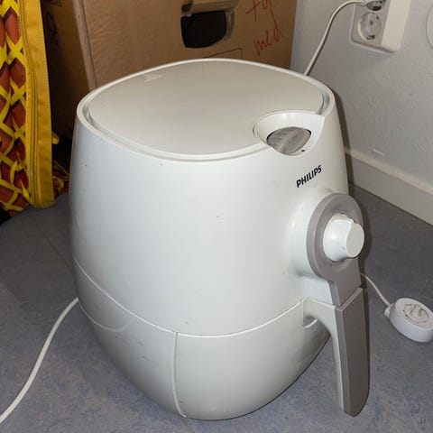 Fritös i rostfritt stål med avtagbar korg och lock. Utformad för att enkelt kunna friteras olika livsmedel. Svart färg på handtag och lockdetaljer.
