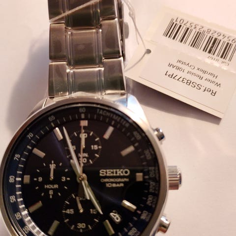 Breitling Navitimer armbandsur i tvåfärgat rostfritt stål. Uret har rund boett med grå urtavla och guldfärgade subdials samt datumvisning. Länkarmbandet är i polerat stål med guldfärgade mittlänkar och viklås med Breitling-logotyp. Baksidan är märkt med Breitling Navitimer och information om vattenresistens och rostfritt stål. Klockan är utformad som ett analogt armbandsur med flera totalisatorer på tavlan.
