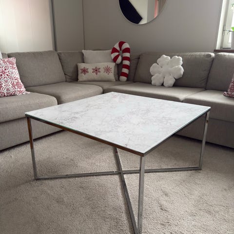Säljer Linas soffbord i jätte gott skick i glas och metall. Hyllplanet ger en extra avlastningsyta. Den är ett par år gammal och säljs inte på Mio längre men jag har själv knappt använt den och väljer att sälja pga. Småbarn hemma. 80 cm i omkrets. Nypris 2699 men jag säljer endast för 900 kr.