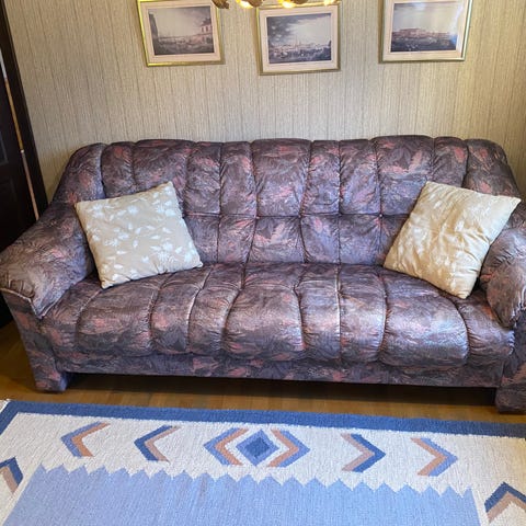 Vi skänker bort denna soffa, lite missfärgning vid sidan är enda problemet. Vi har redan köpt nya soffor och vill gärna slussa ut dessa gamla soffor.