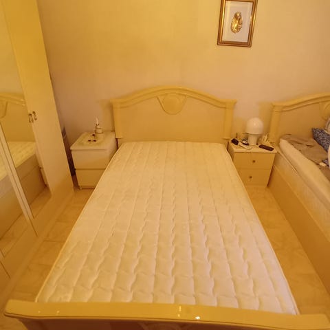 Det finns viss kosmetisk slitage på sänggavelns yta (se sista bild), vilket inte påverkar användningen och är medräknat i priset.