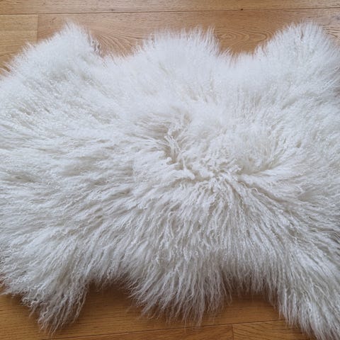 Mycket fint långhårig fårskinn. Mellangrå färg.