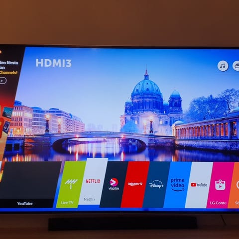 En snygg och lite använd LG 86UL3J-BP inköpt 2024 för konferens. Signature modell men användes lika bra för hemmabio. Tvn är i metall ram och har väldigt tunna sidor, som många 2025 modeller har.