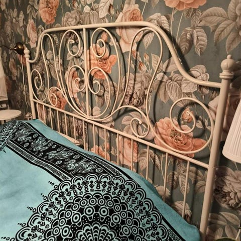 Kontinentalsäng med superfin stoppad sänggavel i svart tyg. Mått 160x200 cm. Ny bäddmadrass behövs.