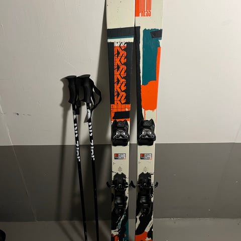 All mountain skidor, 156 cm långa. Använda enstaka gånger.