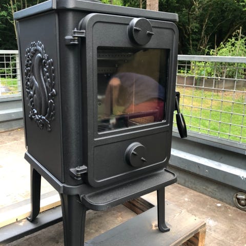 Vi säljer nu vår klassiska vedspis från Mörsö då vi nyligen renoverat och vill ha en annan modell av kamin. Mörsön har en vacker ekorre på sidan och fungerar mycket bra att elda i. Stenarna innuti är spruckna, men med en enkel googling hittar man nya att köpa. Mått på spisen: 72 cm hög, 39 cm djup, 43 cm bred. Liten hylla under spis: 4 cm djup.