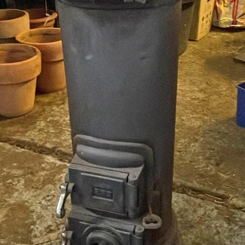 Fullt fungerande kamin. Den har stått i ett hörn i huset och eldats hela förra vintern. Luckorna har gnistskydd. Stos bakåt. Tung!