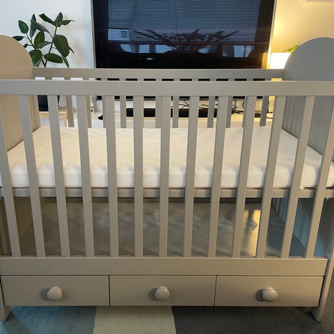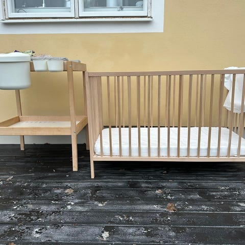Allt är nytt och knappt använt, förutom spjälsängen som är köpt begagnad.