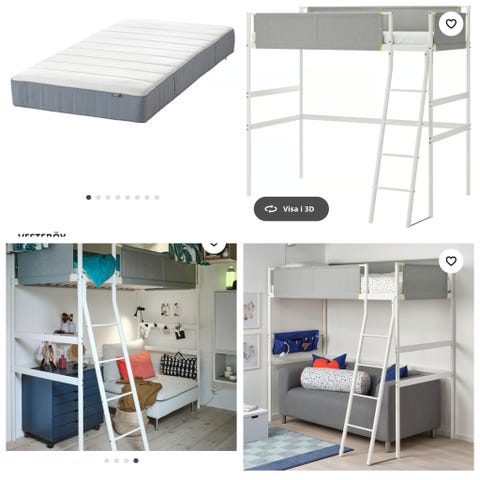 Hämtas nermonterad (alla skruvar finns). Madrass ingår om så önskas.