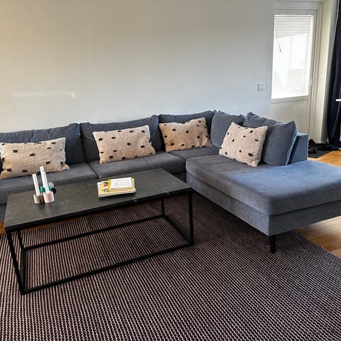 Soffan har även en smart förvaringslösning i schäslongen (se bild).