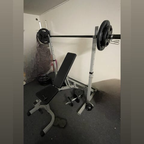 Träningsbänk 200 från Gorilla sports smidigt att fälla ihop och lägga undan . Många olika vinklar. Max vikt 200 kg . Inköpt i December 2024. Nypris 2000:- . Justerbara hantlar CENTR mycket smidigt bara att vrida på handtaget för att justera vikten . Aldrig tappade eller några märken på dom . Ett rejält stativ till dom så man slipper lyfta från golvet. Viktintervall 2,3 kg -4,5 kg- 6,8kg- 9kg- 11,3kg- 13,5kg- 15,6kg- 18kg- 20,3kg- 22,5kg- . Inköp i Juli 2025 Nypris 4,600:-