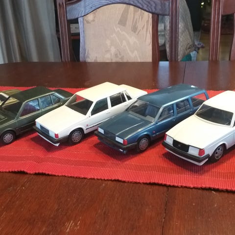 En modellbil av en Volvo 145 Express Taxi. Denna modellbil kommer i sin originalförpackning och står på en svart bas med Volvo-loggan, samt häfte om bilen medföljer.