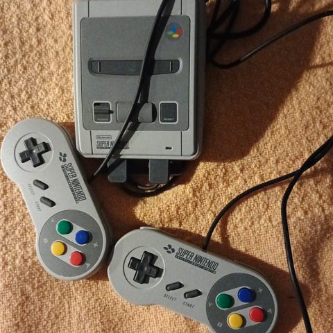 Nintendo Super Nintendo Classic Mini Spelkonsol med förinstallerade spel. Kompakt design som efterliknar originalet.