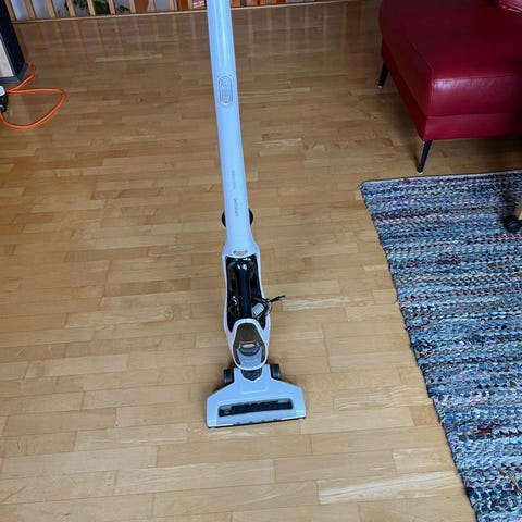 Nilfisk Aero 26 dammsugare i blå färg. Utrustad med slang och handtag för enkel användning. Passar för rengöring i hem eller arbetsmiljö.