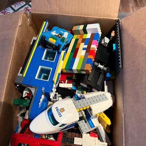 Har en låda med ca 7kg Lego. Det ligger lite blandade delar från olika byggen, för det mesta är det Lego City.