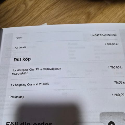 Inköpt i oktober från Elgiganten. Säljer på grund av flytt. Nypris 2000kr. Model MS23K3515