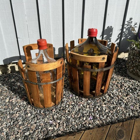Glasflaskor för vinjäsning, flaskträdgård eller prydnad