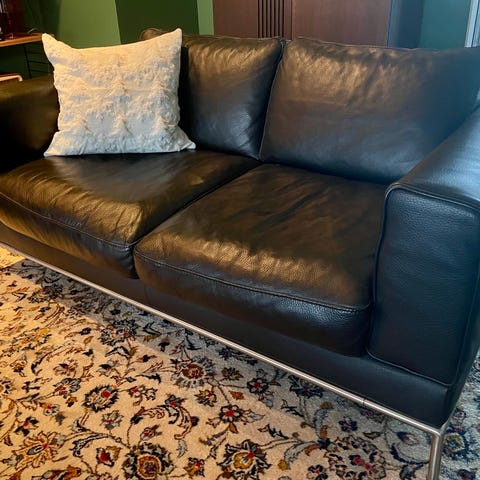 En tvåsitts skinnsoffa som är sparsamt använd. Säljes då nu har behov av fler sittplatser.