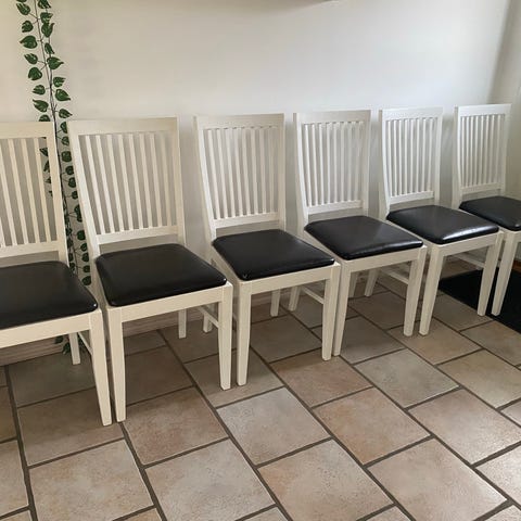 6 st Svarta stolar i lackerat stål. 1 500 kr för alla.
