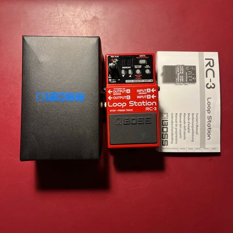 Boss GP-10 gitarrtillbehör i gul färg. En enhet för gitarrister med flera funktioner och kontroller, inklusive pedaler och anslutningskablar. Passar för användning med elgitarr.