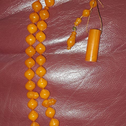 2 st radband kamelben helt nya mycket fina.och 3 st bakelite radband helt nya mycket fina är du intresserad för mer info om storlek och vikt du kan kontakta mig.pris är 350/st jag bjuder på frakt