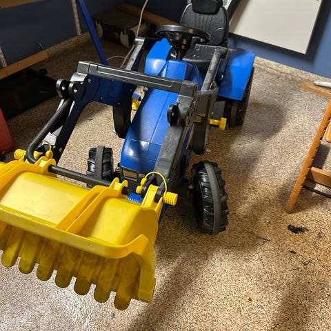 Leksaker för tramptraktor. Släp, snöplog, vinsch, Ringvält, Tramptraktor. bobby-car.