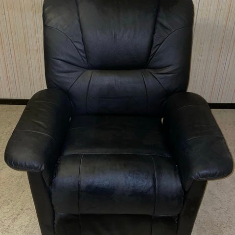 En elektrisk fåtölj med hjälp funktionen att få hjälp att resa sig upp. Den är i brun läder material. Ny pris ca 10 000kr.