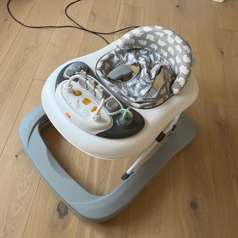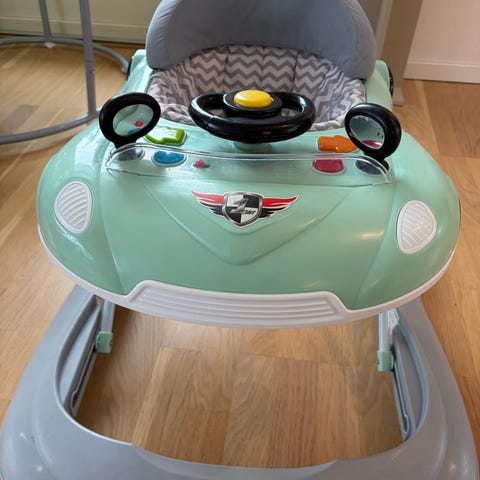 Rolig lekstol från Fillikid i form av en bil. Går att justera höjden i 3 olika lägen. Gåstolen har en underhållande lekbricka med olika knappar och funktioner som ger billjud, musik och lite ljus ifrån sig.