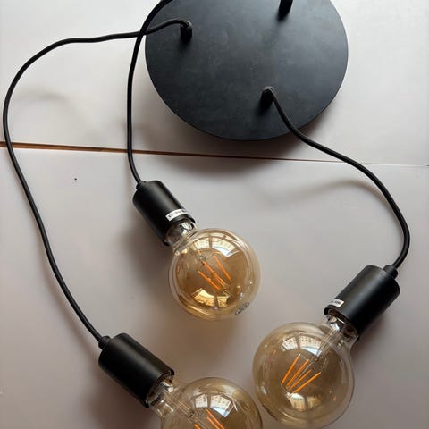 Taklampa med fem hängande lampor i olika höjder.