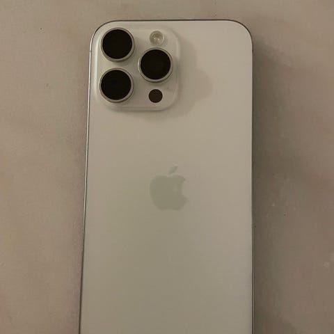 Apple iPhone 16 Pro Max med 256 GB lagringsutrymme. Telefonen har en stor skärm och tre kameror på baksidan. Färgen är ljus, sannolikt vit eller silver. Passar för användare som söker en avancerad smartphone med hög kapacitet.