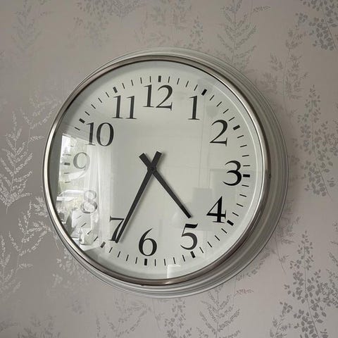 Väggklocka 30cm med lätt rosa bakgrund och ett motiv.