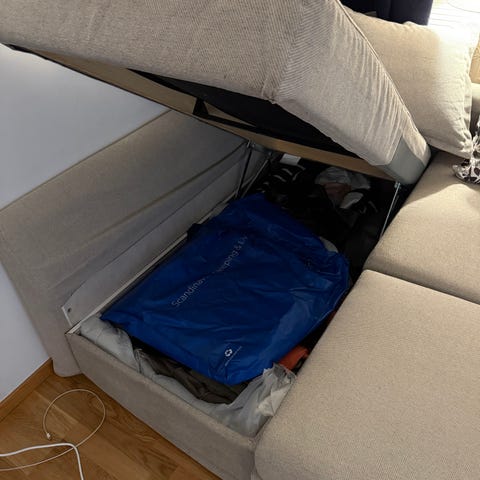 Divansoffa med plats för 4-5 personer i gott skick. Soffan kan med enkelhet kan göras till säng om 140x200 och har mycket praktiskt inbyggd förvaring!