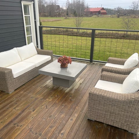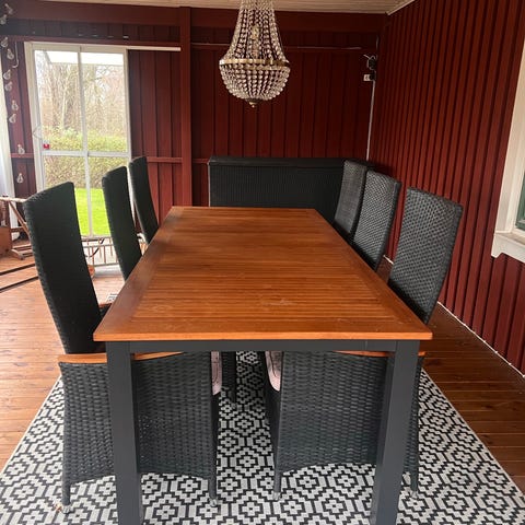 Stolarna köptes i somras. Bordet har några år på nacken, men är i fint skick. Små sprickor och liknande finns, vilket är naturligt med betong.