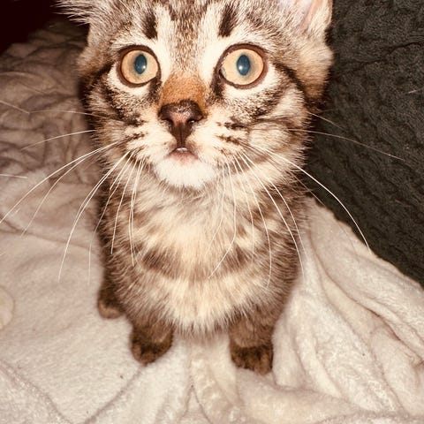 Bruno, en go och superbusig kattunge. Mörkt randig. Avmaskad och rumsren.