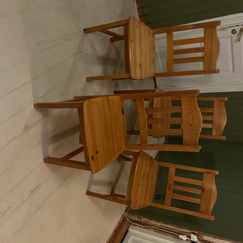 4 st stolar med dynor okej skick. Finns vissa märken på stolarna men är ändå i bra skick. Nypris 295 st utan dynor