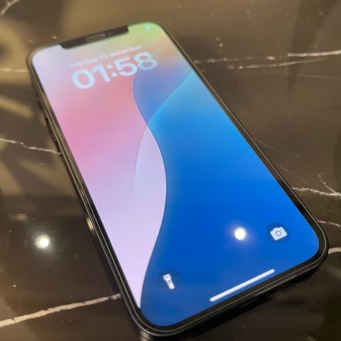 Apple iPhone 12 mobiltelefon med 128 GB lagringskapacitet. Telefonen har en vit färg och är utrustad med avancerade funktioner för kommunikation och multimedia.