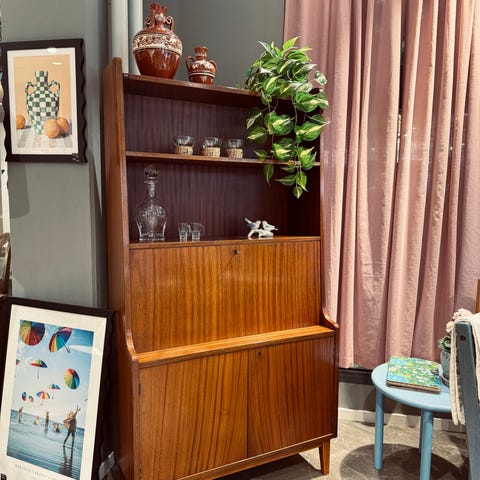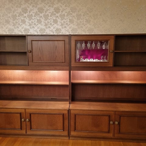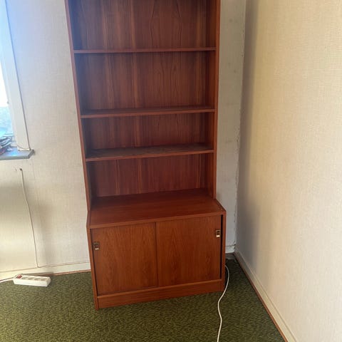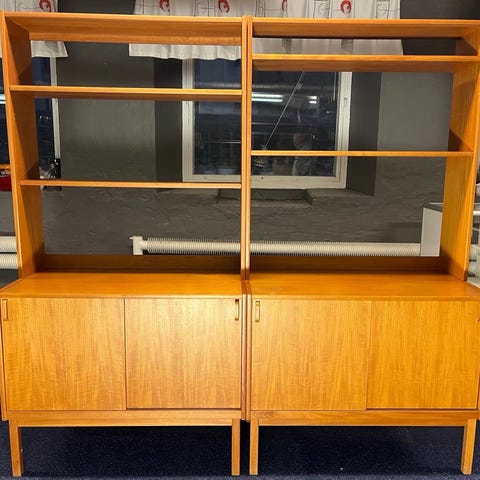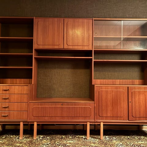Retro teak bokhylla med skåp och lådor 50-talet