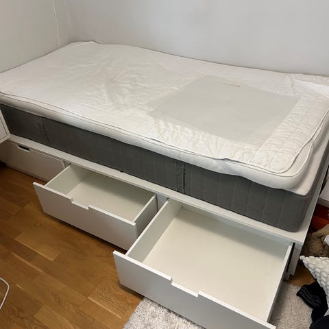 Säng från IKEA Nordli, 90x200 cm. Ingår resårmadrass och bäddmadrass. Har använt madrasskydd, som även det ingår. Allt i mycket fint skick, hittar ingenting att anmärka på.